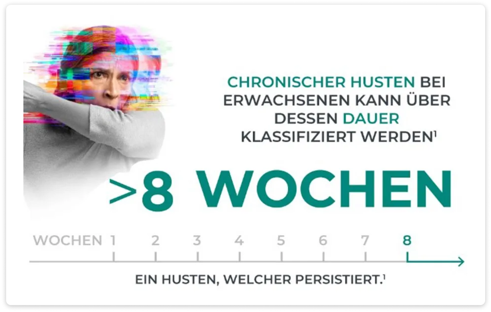 Die hier bereitgestellten Informationen ersetzen nicht den Besuch und die eingehende Untersuchung bei einem Haus- und beispielsweise einem Lungenfacharzt. Sollten Sie seit mehr als acht Wochen unter anhaltendem Husten leiden, vereinbaren Sie bitte einen Arzttermin, um die möglichen Auslöser Ihres Hustens diagnostisch abzuklären.