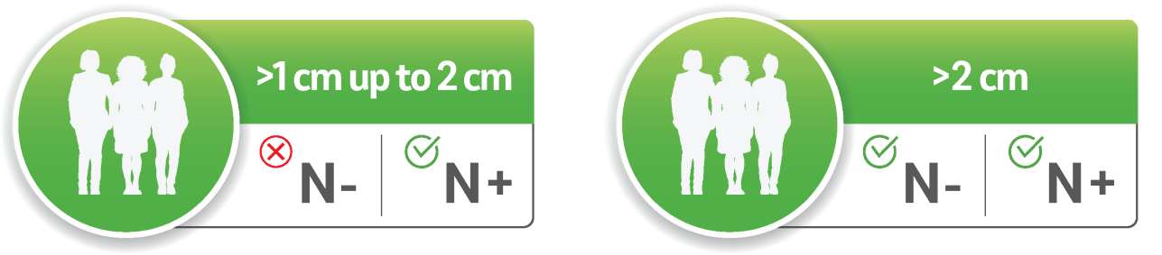 Tumour size >2 cm in diameter regardless of lymph node involvement