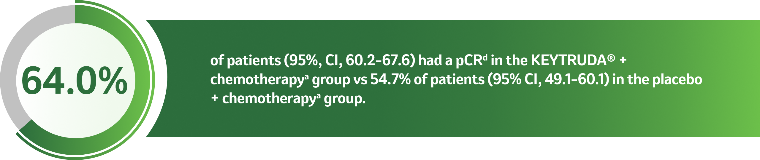 At the pre-specified final analysis (n=1002), a statistically significant improvement in pCRd rate (p=0.00221e) was observed at the time of definitive surgery following neoadjuvant therapy with KEYTRUDA® + chemotherapya vs placebo + chemotherapy.a