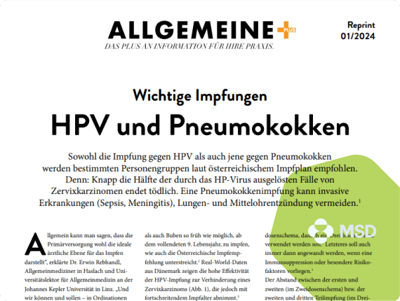 Reprint des Österreichischen Infektionskongress zum Thema „Pneumokokkenimpfung neu: Nicht auf die Erwachsenen vergessen!“. Bestellen Sie hier ein Exemplar des Nachdrucks oder laden Sie sich die digitale Version herunter.